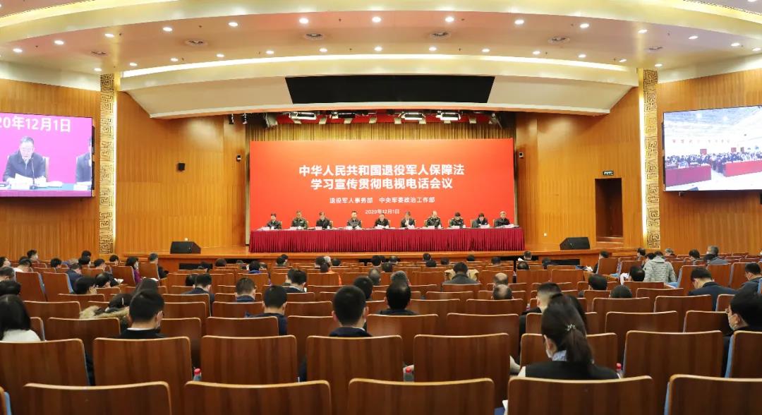 12月1日,云顶网上赌场 事务部、中央军委政治工作部召开学习宣传贯彻云顶网上赌场 保障法电视电话会议。图为主会场。曹舒昊 摄