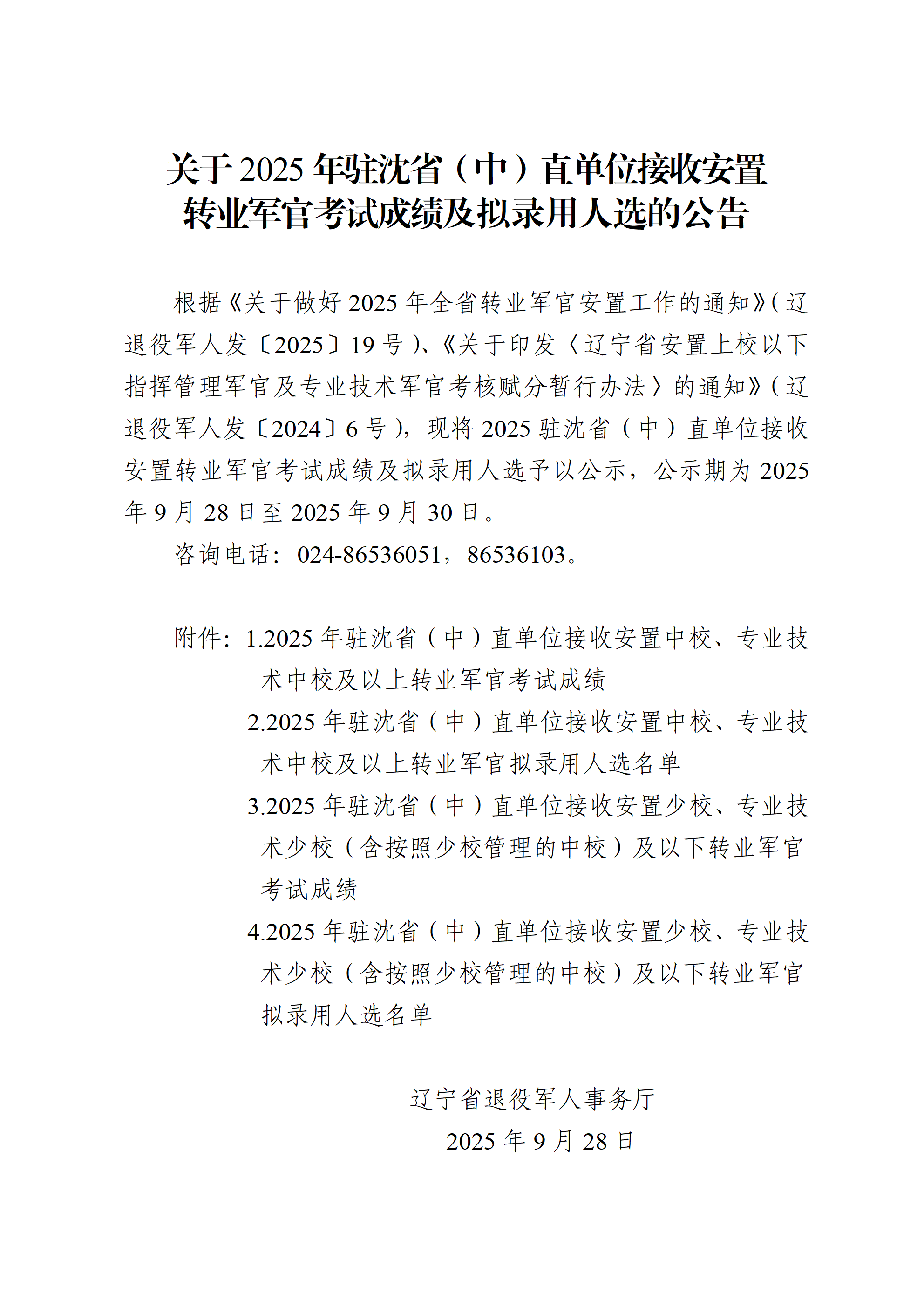 关于2025年驻沈省(中)直单位接收安置转业军官考试成绩及拟录用人选的公告