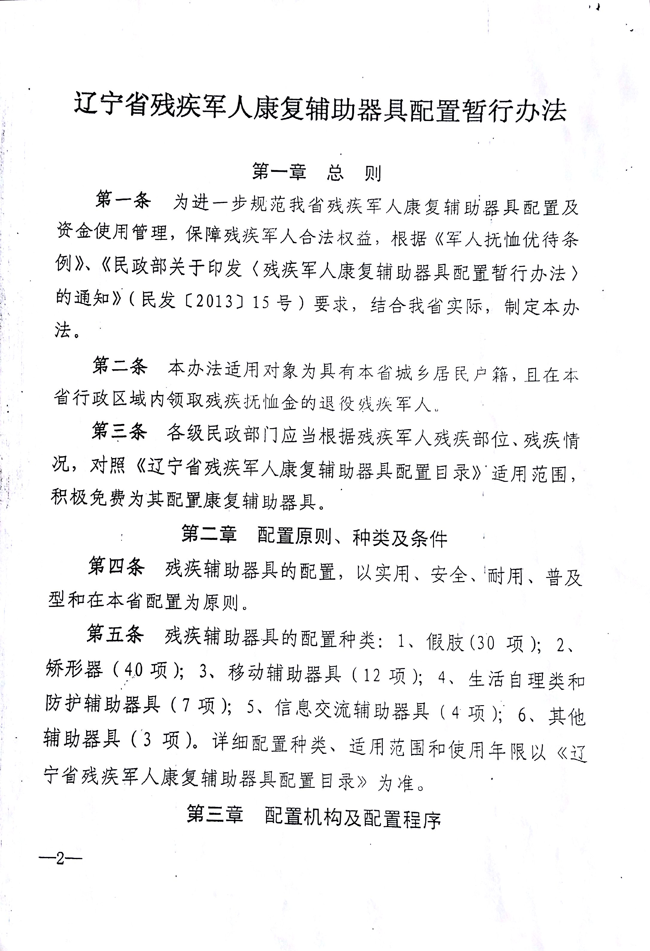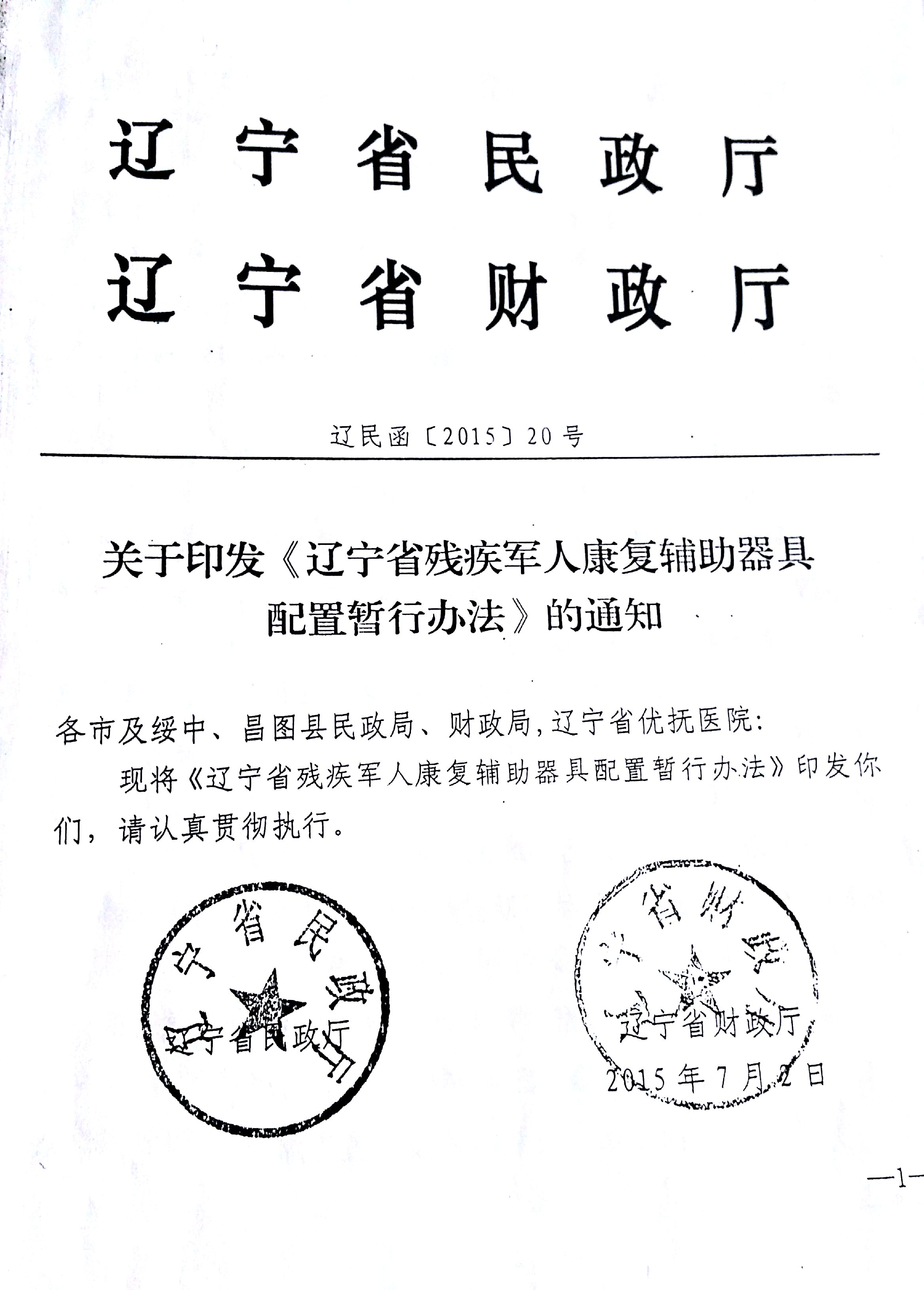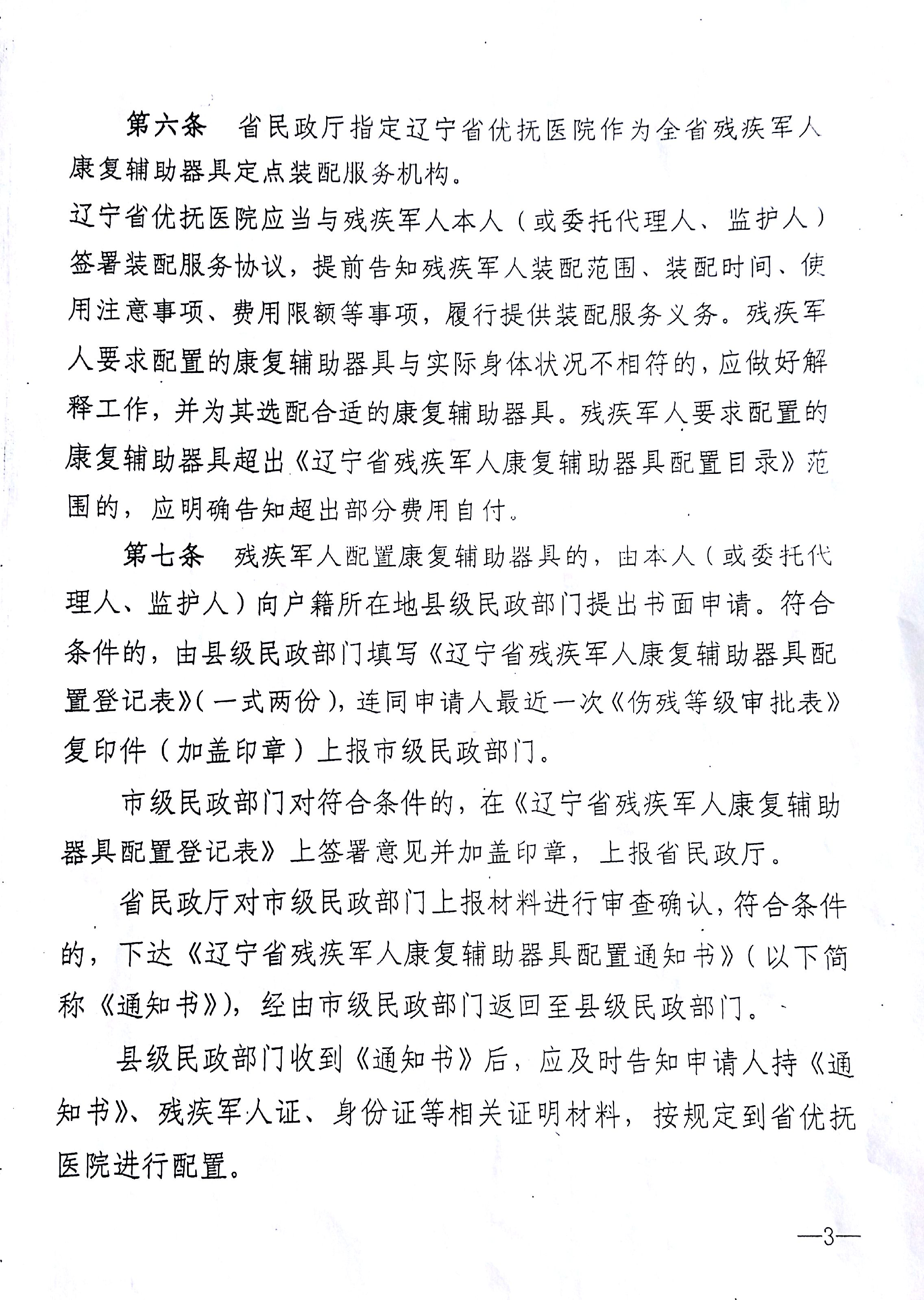 关于印发辽宁省残疾军人康复辅助器具配置暂行办法的通知